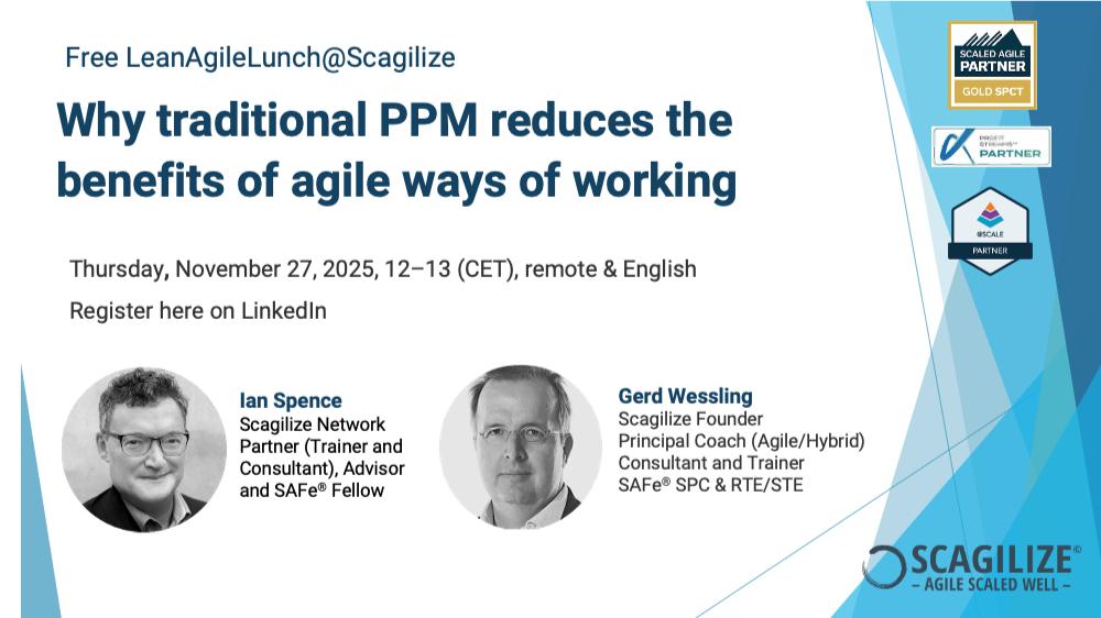 Hear the latest insights from SAFe Fellow Ian Spence & Scagilize Founder Gerd Wessling about „Why traditional PPD reduces the benefits of agile ways of working“.